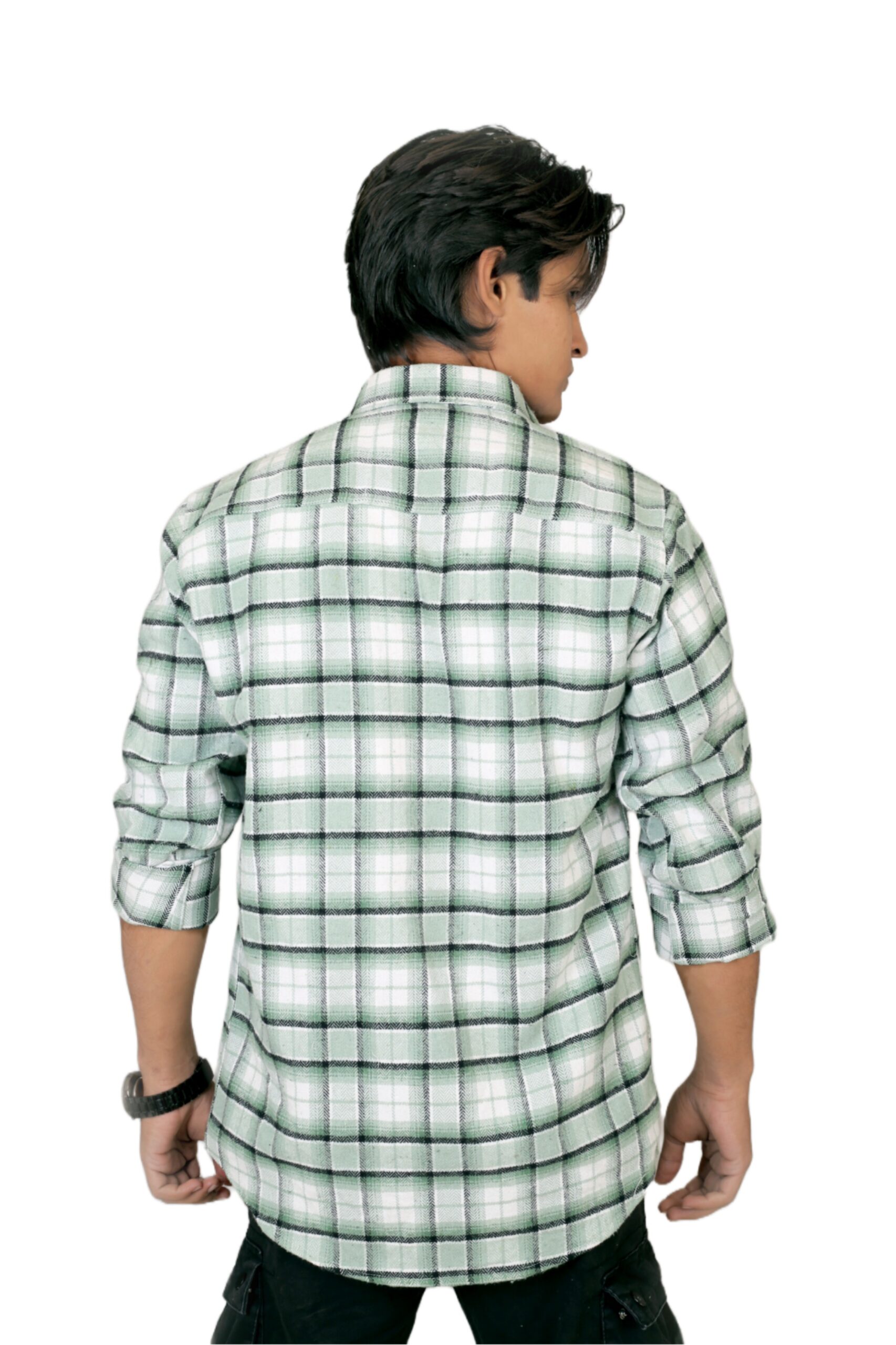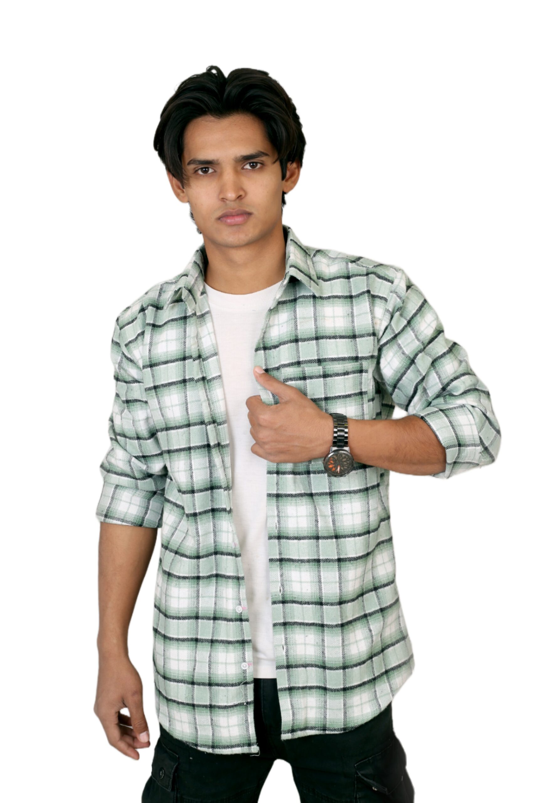 The soothing green and white plaid pattern brings a clean, outdoors-inspired look that pairs perfectly with jeans, cargos, or layered over a basic tee. Featuring a classic button-down front, full-length sleeves, and a relaxed fit, this flannel shirt is ideal for casual outings, travel, or cool-weather layering.