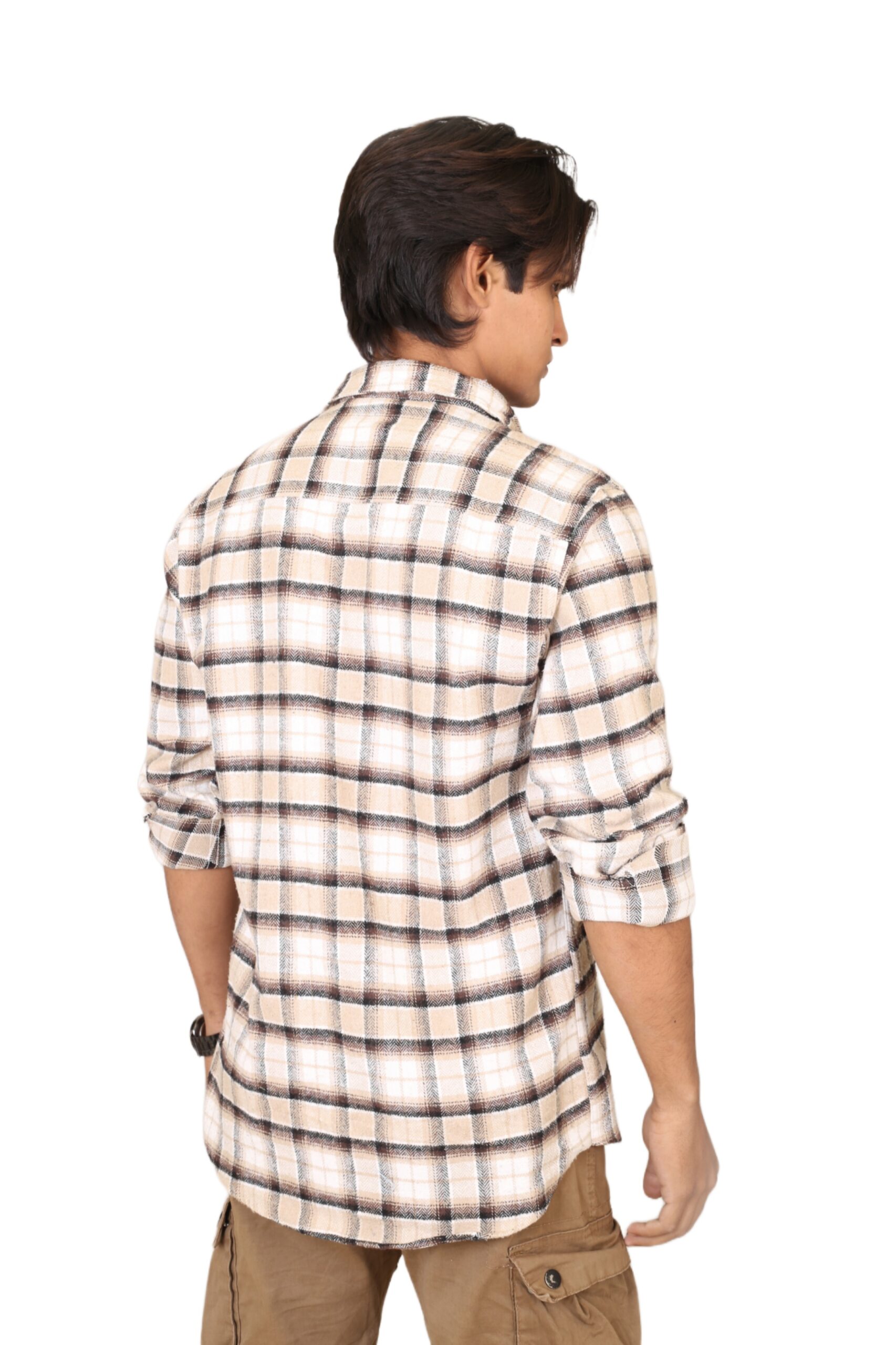 The subtle beige, cream, and brown plaid pattern delivers a clean, earthy aesthetic that pairs effortlessly with jeans, chinos, or cargo pants. Featuring a classic button-down front, full-length sleeves, and a relaxed fit, this flannel shirt is perfect for casual outings, travel, or layering over a basic tee during cooler days.